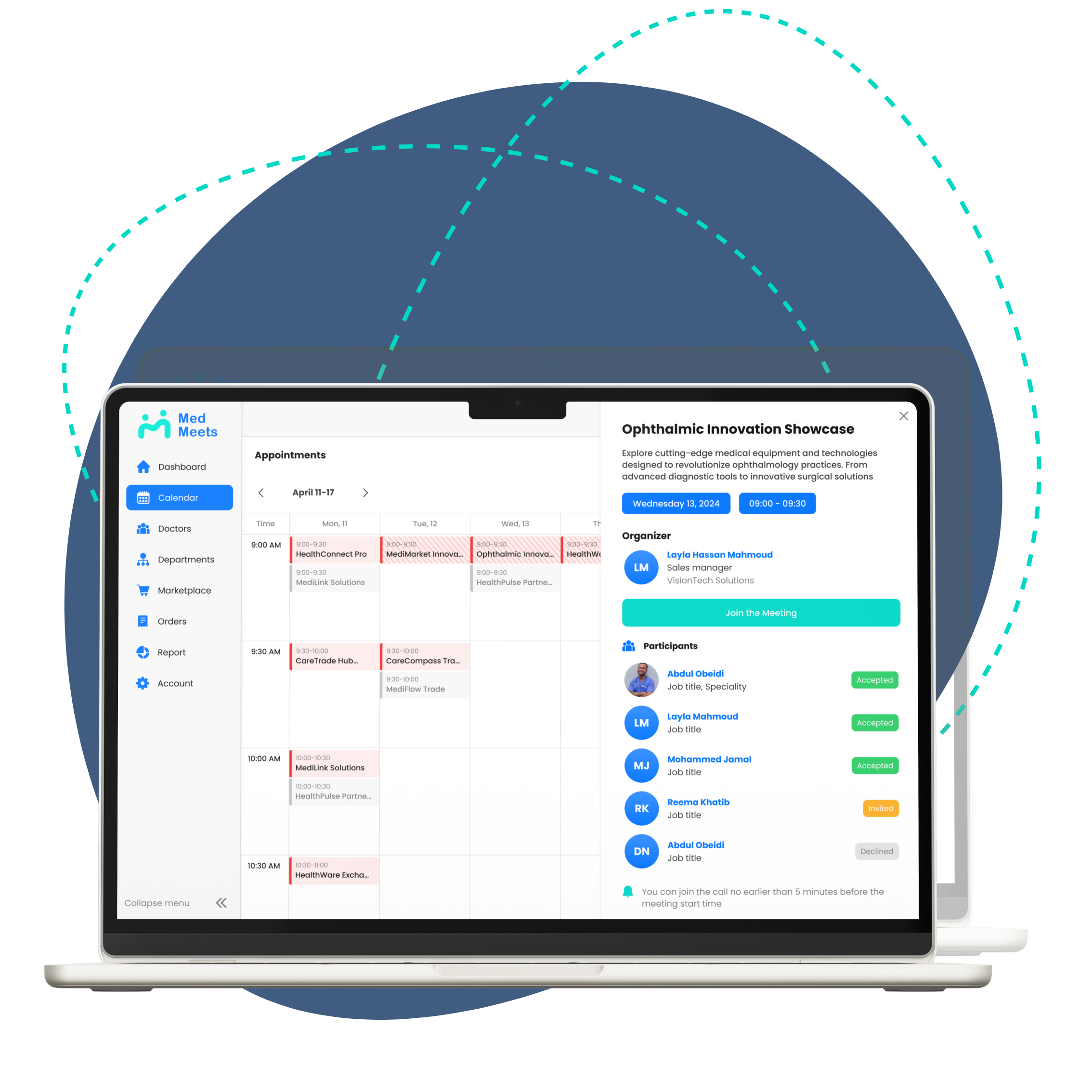 MedMeets is your bridge to seamless collaboration between Healthcare providers and Companies. We facilitate meaningful connections, enabling Companies to showcase their products and services directly to Healthcare providers. With MedMeets, innovation meets accessibility, revolutionizing the way Healthcare providers and Companies interact.